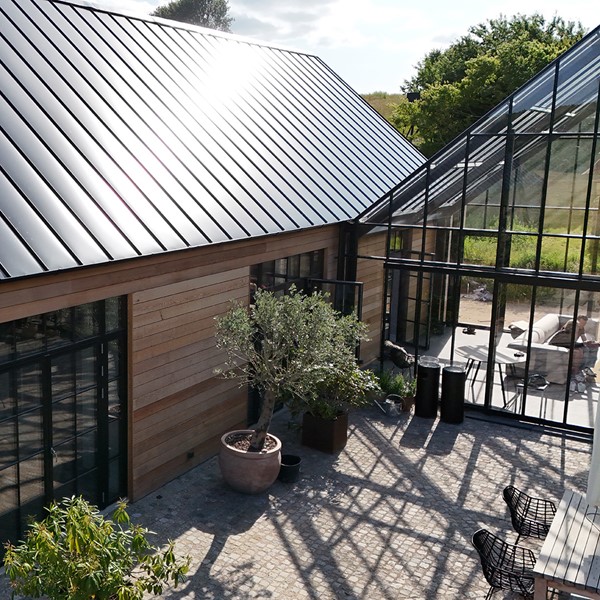 Easy-Click erbjuder en stilren och modern design som passar både traditionella och moderna byggnader. Dessutom är den anpassad för låga taklutningar, med en minimilutning på 10°, vilket gör den till ett flexibelt val för många typer av tak.